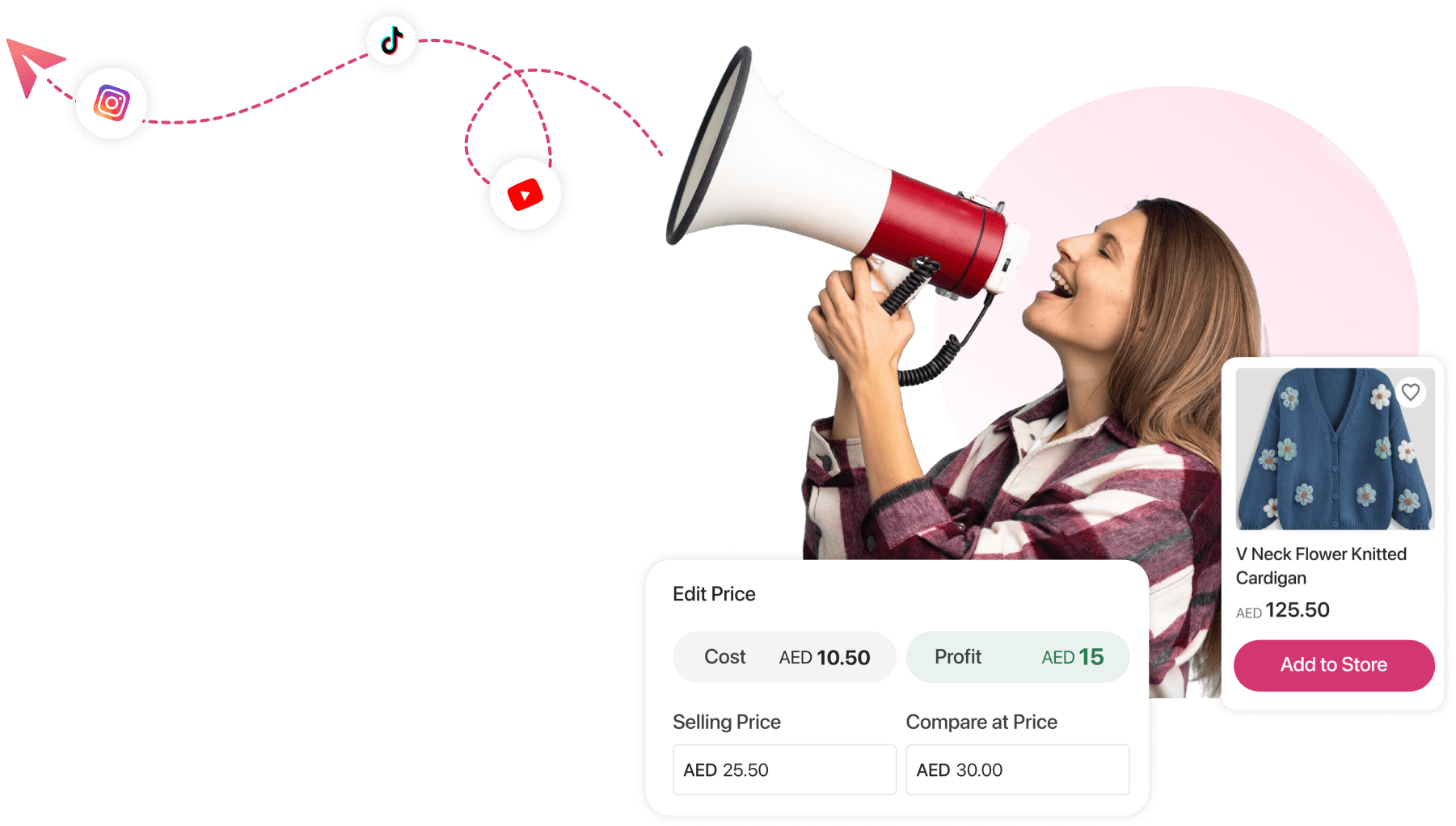 Setting up your store is simple and intuitive. With just one click, you can add products, customize prices, set your profit margins and share with your followers. It’s designed for anyone to use, no matter their experience.